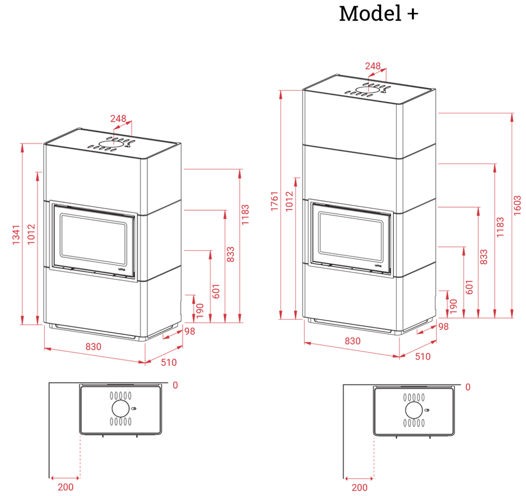 Si vous choisissez cette version de Beto, vous pouvez lui ajouter un module supplémentaire qui permet de réhausser le poêle de 40 cm en hauteur. Le module supplémentaire est un accessoire en option qui se pose sur la chambre de combustion.