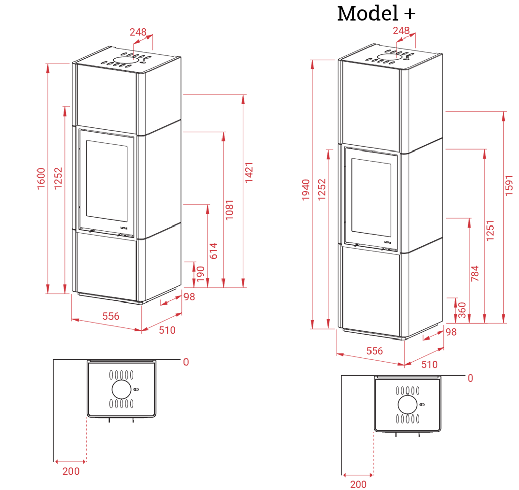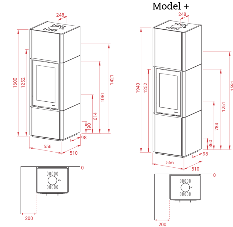 Si vous choisissez cette version de Beto, vous pouvez lui ajouter un module supplémentaire qui permet de réhausser le poêle de 40 cm en hauteur. Le module supplémentaire est un accessoire en option qui se pose sur la chambre de combustion.
