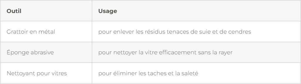 Les outils et produits nécessaires pour nettoyer sa vitre de cheminée