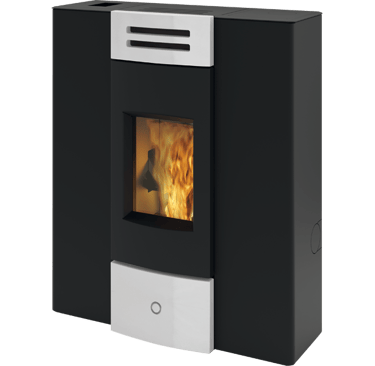 Poêle à granulés étanche canalisable « gain de place » avec seulement 36 cm de profondeur, idéal pour le couloir, mais adapté à tous les espaces de la maison.