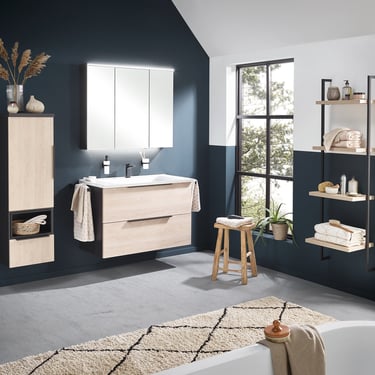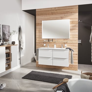 Un petit extra ? Notre programme sait ce qu’il veut. Il craque pour le style épuré et les détails raffinés tout en contribuant à mettre de l’ordre là où il le faut. Quelle que soit leur largeur (600, 700, 800, 900, 1 000 ou 1 200 mm), les meubles Feo offrent suffisamment de place pour ranger tous vos ustensiles de bain.