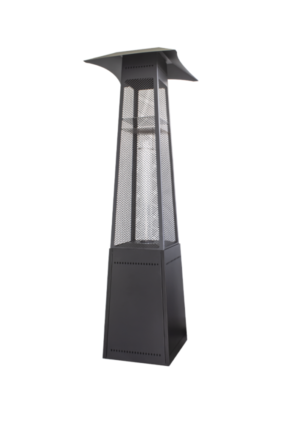 La conception classique du champignon chauffant pyramidal où la flamme traverse le cylindre à l’intérieur. Le premier né reste l’indémodable des poêles extérieurs à granulés.