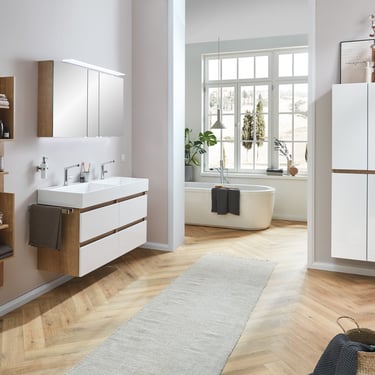 Le programme Highline150 conjugue élégance intemporelle et qualité exceptionnelle. Les décors façade parfaitement assortis les uns aux autres s’harmonisent avec les vasques en céramique exclusives et subliment vos meubles de salle de bains. La vasque « Squared », que nous déclinons depuis peu sous forme de modèle tendance à encastrer, jouit d’une grande popularité.