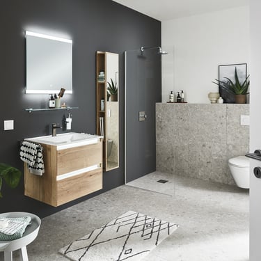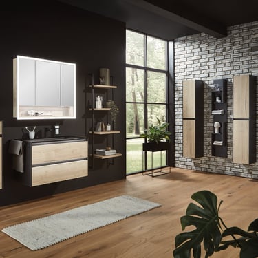 Posez de nouveaux jalons en matière de design, de qualité et de fonctionnalité – avec Highline 250. Grâce à ses belles façades et les nombreux coloris corps, nuances de chêne ou aspect béton, cette série vous offre une grande liberté d’aménagement. L’éclairage LED sophistiqué vous permet de mettre en valeur vos miroir et meuble sous vasque, ainsi que les profils de poignée et de souligner le caractère exclusif de votre salle de bains.