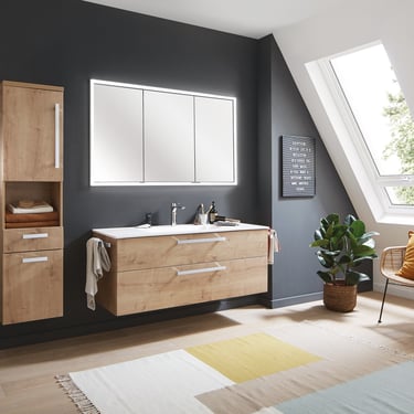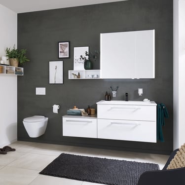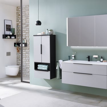 Le programme Life Plus donne envie de vivre ! Les formes claires et séduisantes offrent un havre de quiétude et de sécurité et s’harmonisent parfaitement avec les vasques design en verre et STONEPLUS. Le beau meuble sous vasque, 560 mm de haut, apporte l’ordre souhaité et un espace de rangement pratique pour toutes les petites choses de la vie courante.