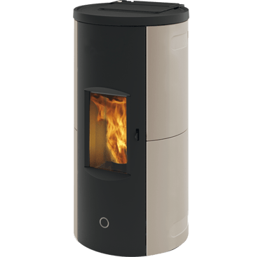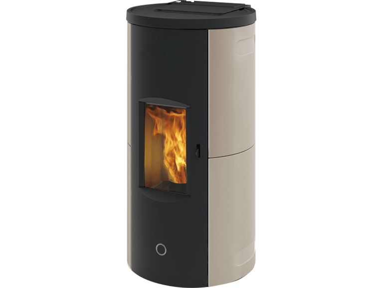 Sortie des fumées Ø 8 cm, vers le haut (en céramique et acier) et à l’arrière (en acier noir opaque et blanc perle), avec kit coaxiale Ø 8/13 cm (option)