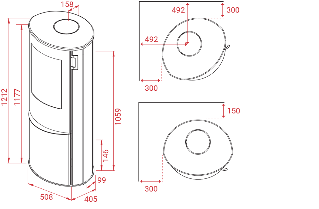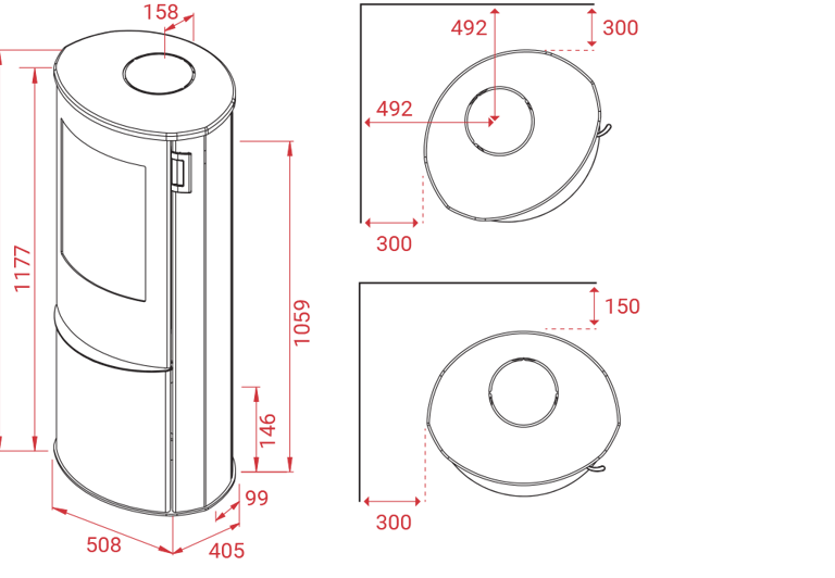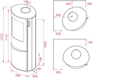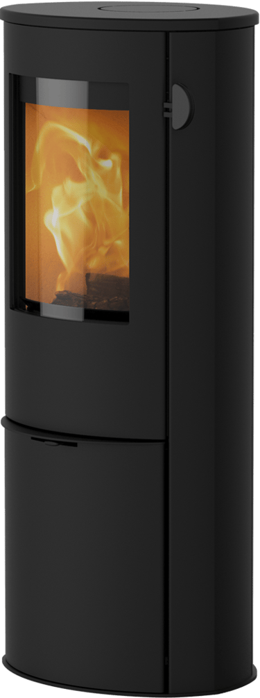 Le poêle intègre différents détails conviviaux, tels que des éléments de tiroir pratique à fermeture magnétique pour le rangement des accessoires et du matériel d’allumage, une porte en fonte et en acier particulièrement solide ainsi qu’un levier de contrôle en silicone sous la porte qui permet d’obtenir un contrôle facile et précis de la combustion. Un tiroir à cendres pratique est placé derrière la porte.