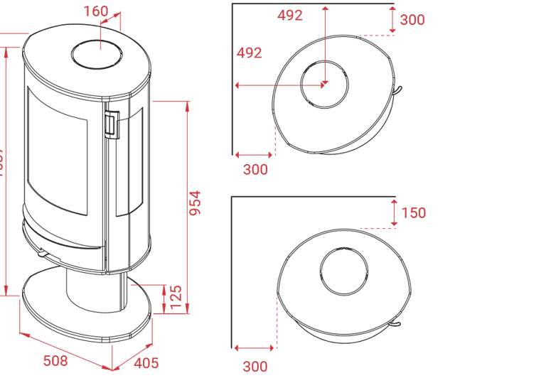 La technique de combustion permet une utilisation optimale du bois et la haute qualité du poêle est obtenue par une plaque de porte en acier résistant, un cadre arrière en fonte, un double vitrage latéral et par le système de nettoyage des vitres Turbo-Clean.