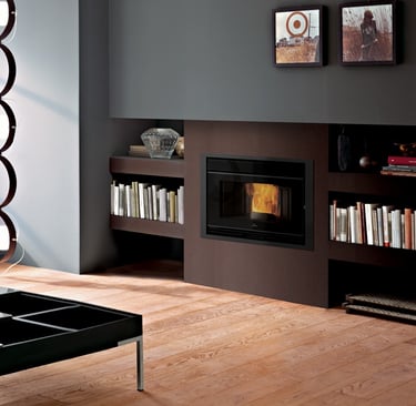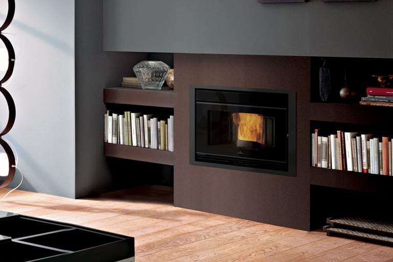 Insert à granulés compact, idéal pour récupérer une vieille cheminée ouverte ou pour une nouvelle installation.