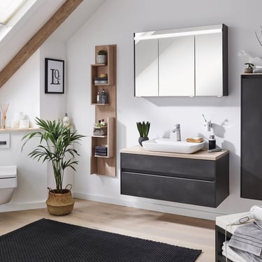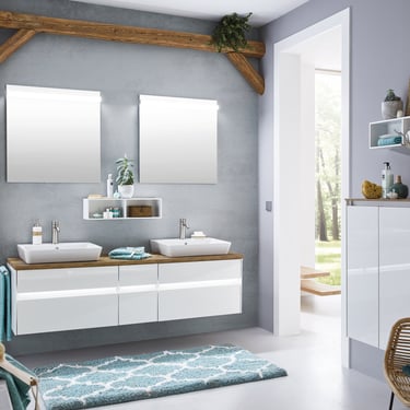 Vous aimez la délicatesse et préférez donc un look élégant et unique ? Venez alors découvrir « pronto » le programme éponyme. Les grands profils de poignée identiques au corps de meuble, qui se fondent dans le décor, sont d’une élégance inégalée. L’éclairage LED remarquable met en exergue le design intemporel et illumine votre oasis bien-être.