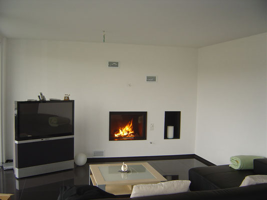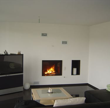 2 ou 4 buses de sortie à air chaud 150mm, Porte en verre céramique basculante et amovible en hauteur. Sur demande, portes dorées ou chromées. Disponible en version hydro.