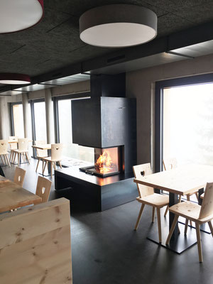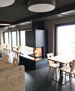 2 ou 4 buses de sortie à air chaud 150mm, Porte en verre céramique basculante et amovible en hauteur. Sur demande, portes dorées ou chromées. Disponible en version hydro.