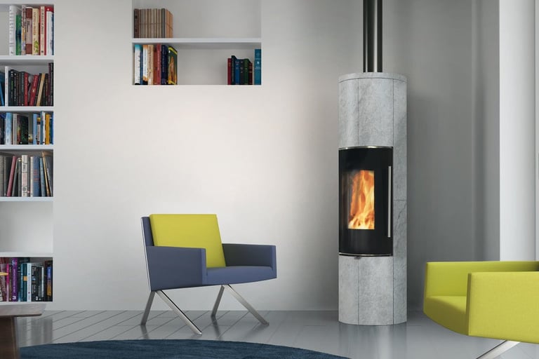 La partie supérieure avec des anneaux réfractaires permet d’accumuler de la chaleur et de la libérer de manière prolongée pour réchauffer la maison, y compris dans les heures suivant le dernier chargement de bois.