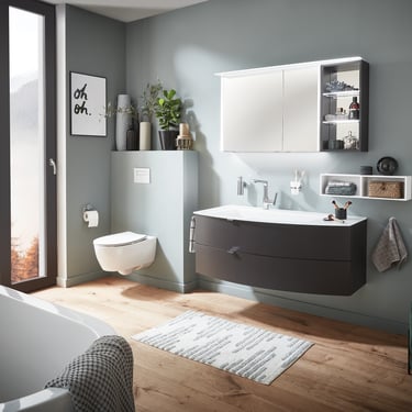 Le charme du programme Wings se reflète dans les détails et dans le mélange de styles intéressant. Les lignes légèrement galbées rappellent des ailes et confèrent aux meubles une forme triangulaire hors-pair. Cette série se distingue également par un très grand nombre de modèles et par la palette de couleurs assorties. Les profilés poignée courts confèrent aux meubles un cachet original.