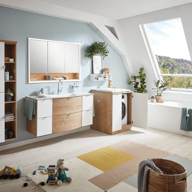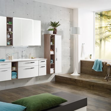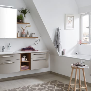 Cherchez-vous, vous aussi, parfois un refuge, une oasis bien-être ? Le programme Modern Classic est alors exactement ce qu’il vous faut ! Le look rétro associé aux éléments modernes est un hommage au charme cosy et crée une atmosphère invitant à la détente. Les vasques STONEPLUS, qui reprennent les lignes galbées des meubles bas, soulignent ce mélange de styles exceptionnel.